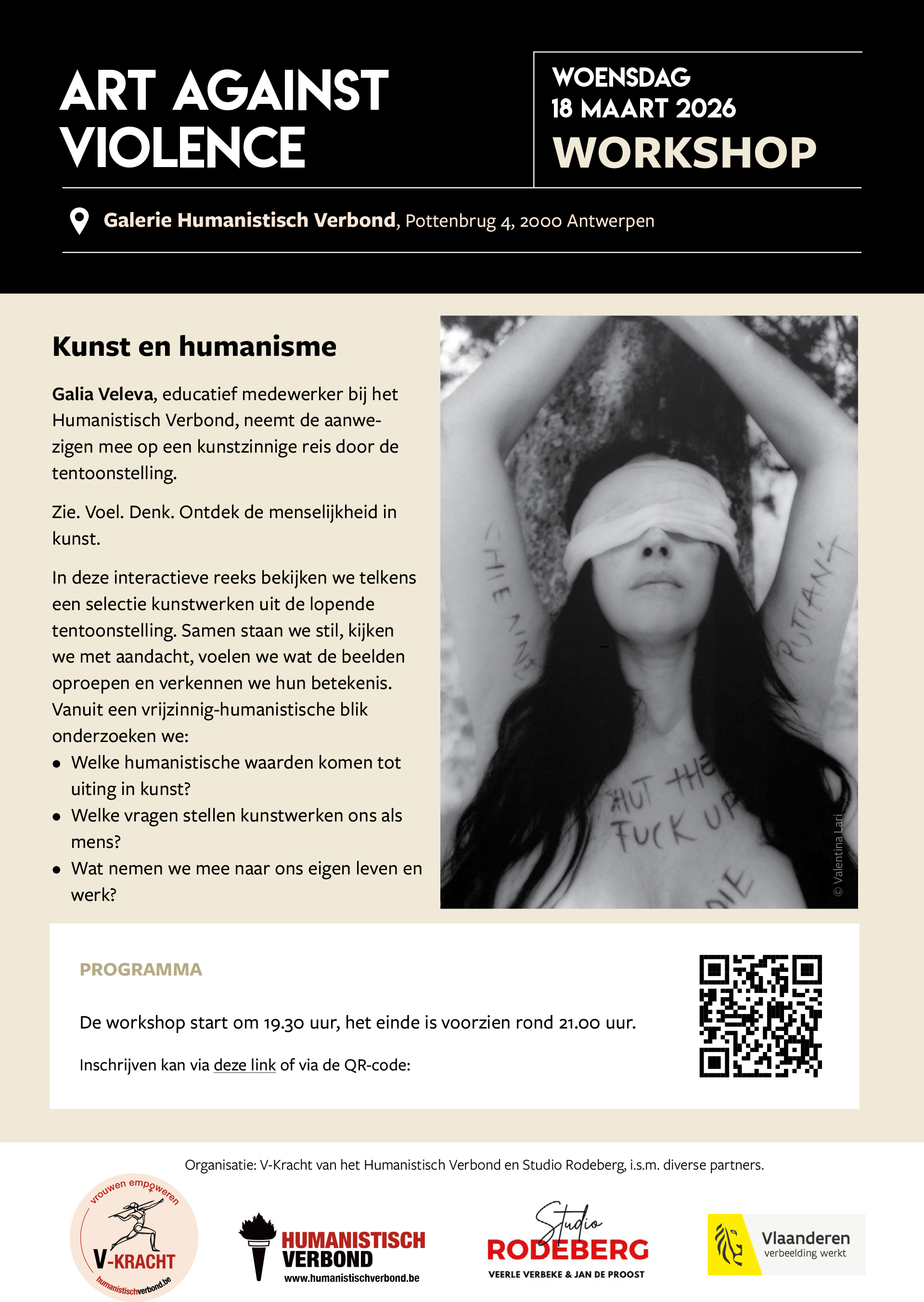 - Locatie: Galerie van het Humanistisch Verbond, Pottenbrug 4, 2000 Antwerpen