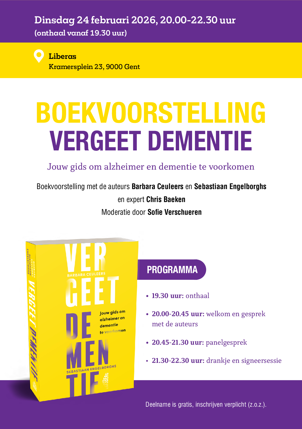 Boekvoorstelling Barbara Ceuleers & Sebastiaan Engelborghs: Vergeet dementie. Jouw gids om alzheimer en dementie te voorkomen