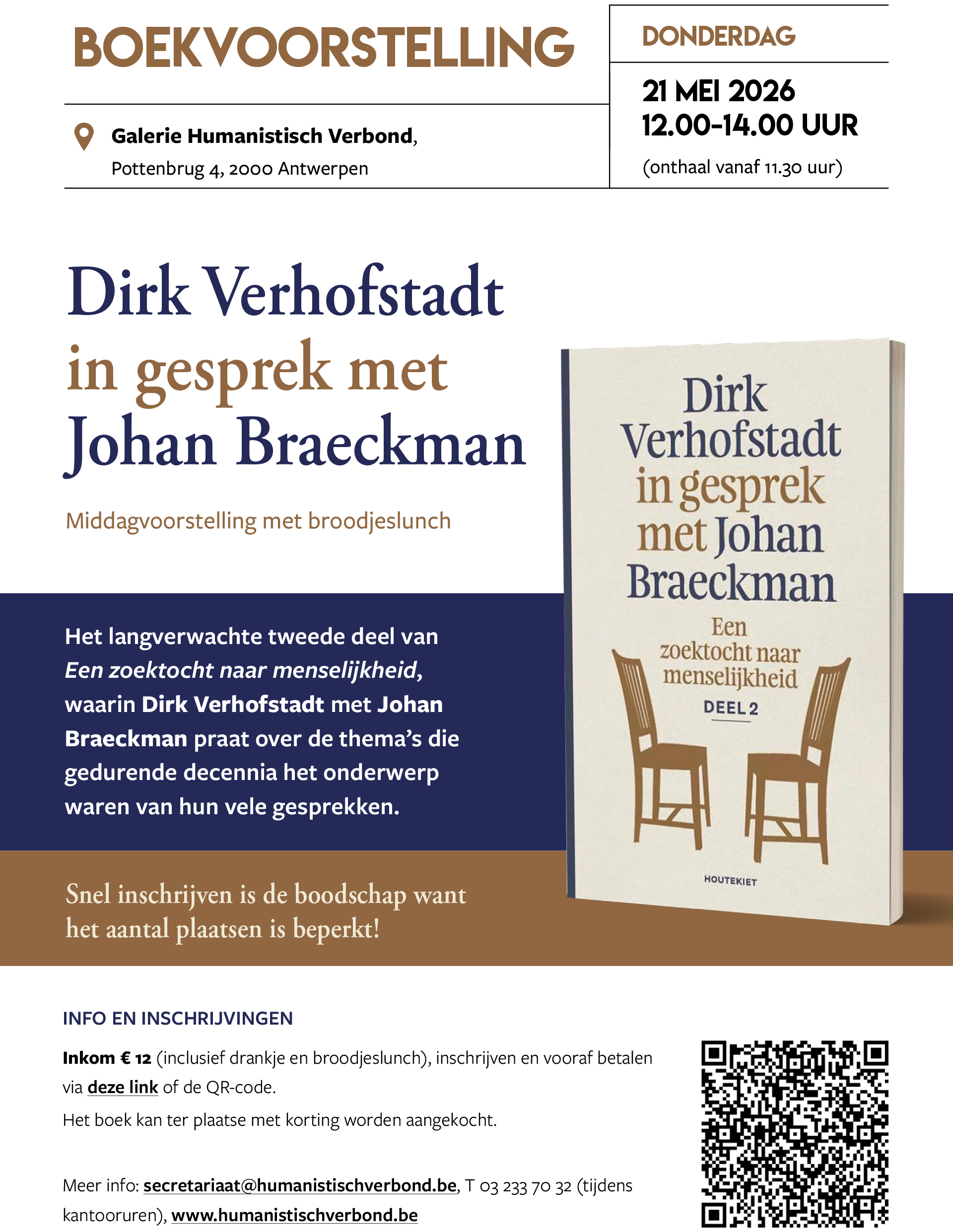 Boekvoorstelling Dirk Verhofstadt in gesprek met Johan Braeckman: Een zoektocht naar menselijkheid (Deel 2)