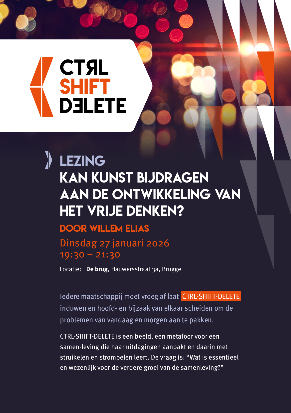 - Locatie: De Brug, Centrum voor het vrije denken, Hauwerstraat 3A in 8000 Brugge