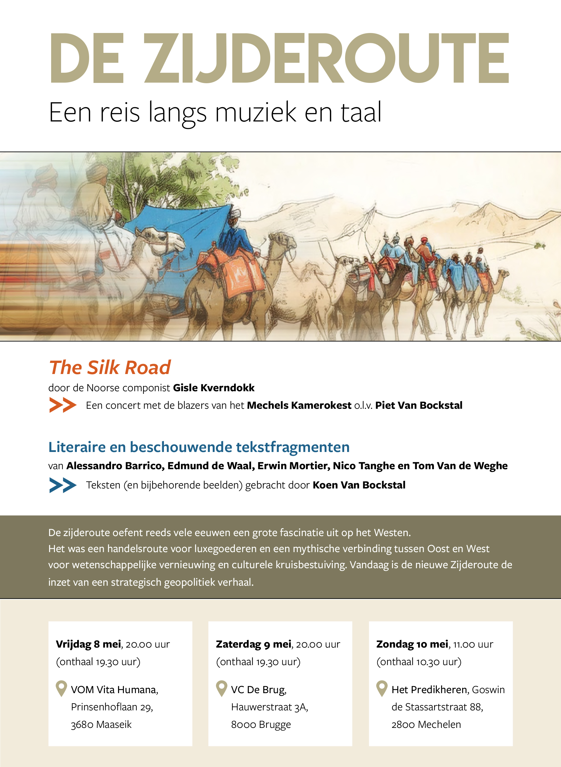 Met The Silk Road neemt de Noorse componist Gisle Kverndokk je mee op een adembenemende tocht door culturen, landschappen en verhalen. Geïnspireerd door de legendarische Zijderoute verweeft Kverndokk kleurrijke melodieën, ritmische energie en filmische orkestraties tot een meeslepend geheel dat zowel avontuurlijk als ontroerend is.