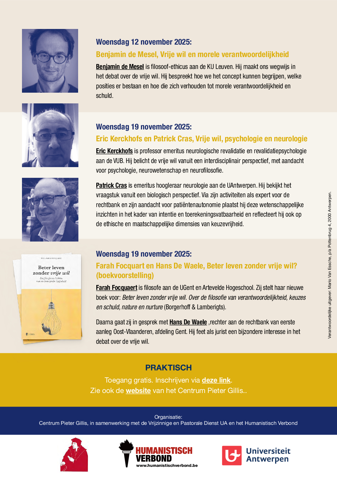 - Organisator: Centrum Pieter Gillis, Vrijzinnige Dienst UA